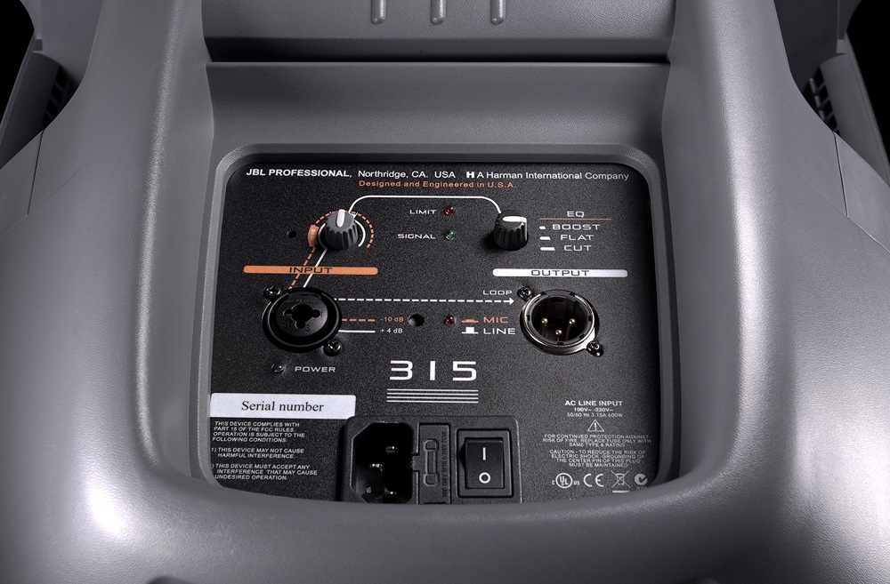 - 15" JBL woofer, 1" neodymium tweeter